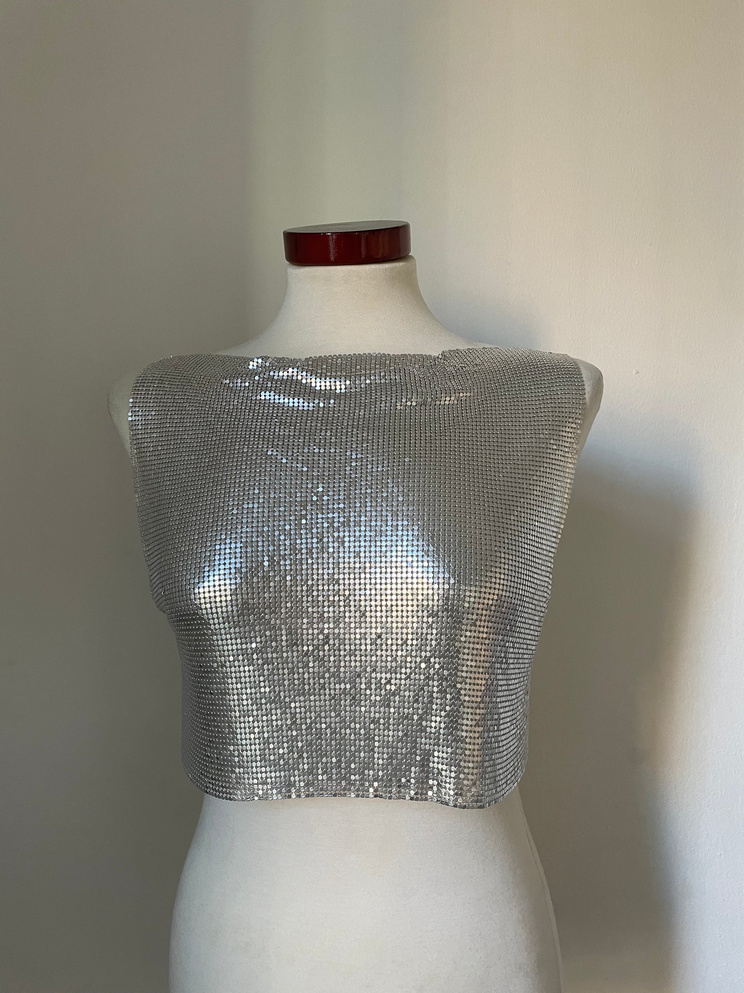 DESCRIPTION: This chainmail top has a closed neck and back. The length reaches a little below the waist.