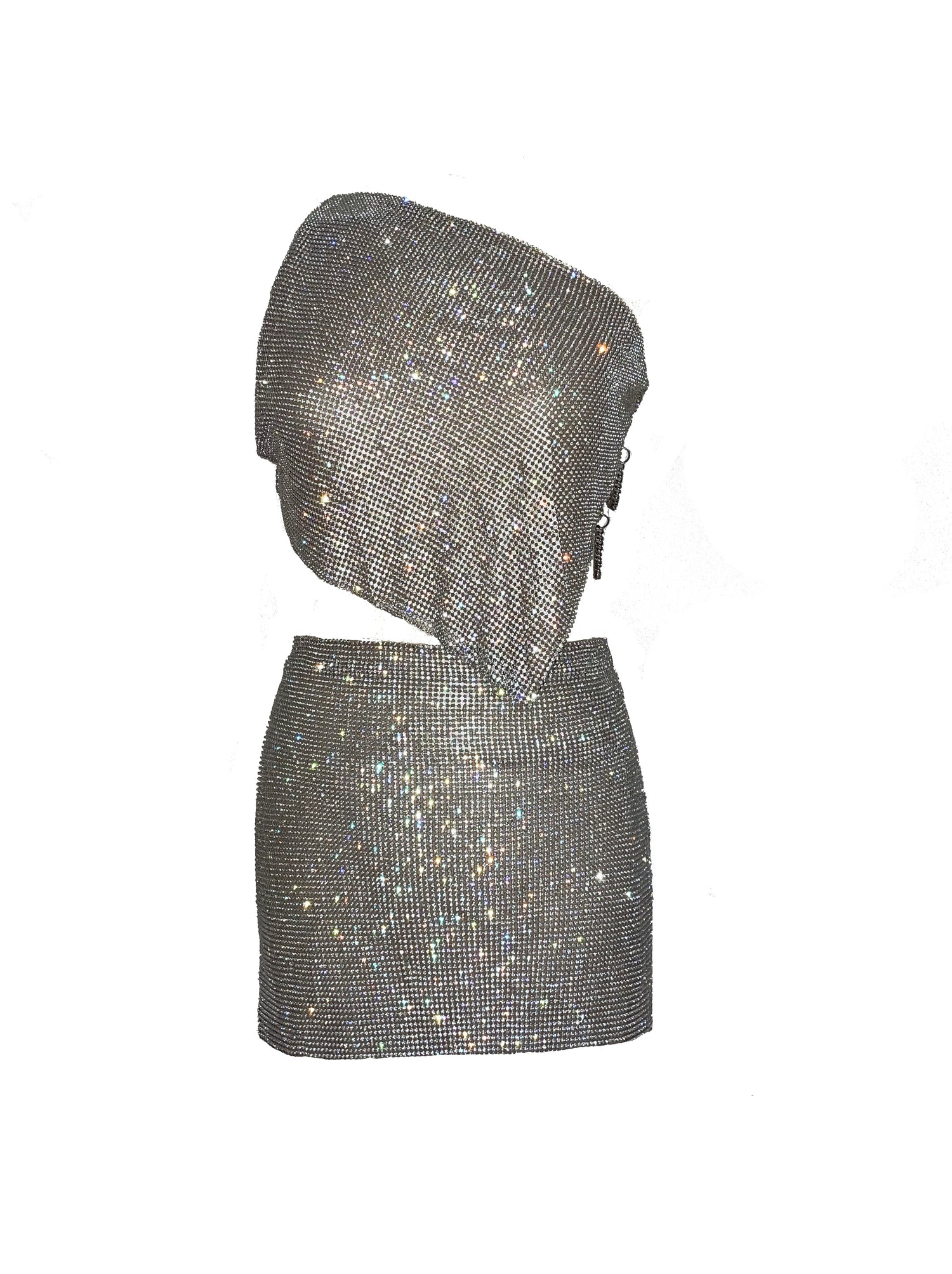CARE INSTRUCTION: The chainmail metal and crystal mesh fabric, requires special attention. We kindly suggest handling it with care to ensure its longevity. While wearing, we encourage our clients to be mindful of their movements. In the rare event of a mesh breakage, don't worry! Reach out to us, and we'll be delighted to offer repair services (additional cost may apply).