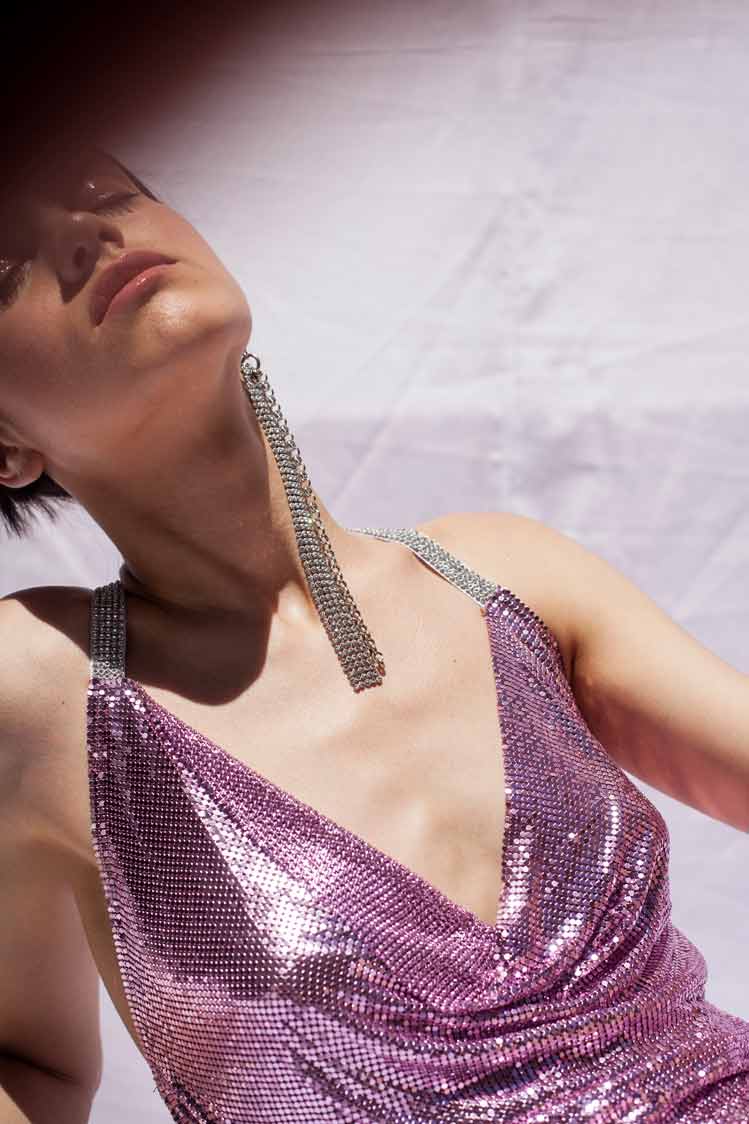 CARE INSTRUCTIONS: This chainmail dress, made of metal and crystal mesh fabric, deserves special attention. We kindly suggest handling it with care to ensure its longevity. While wearing, we encourage our clients to be mindful of their movements. In the rare event of a mesh breakage, reach out to us, and we'll be delighted to offer repair services (additional cost may apply).