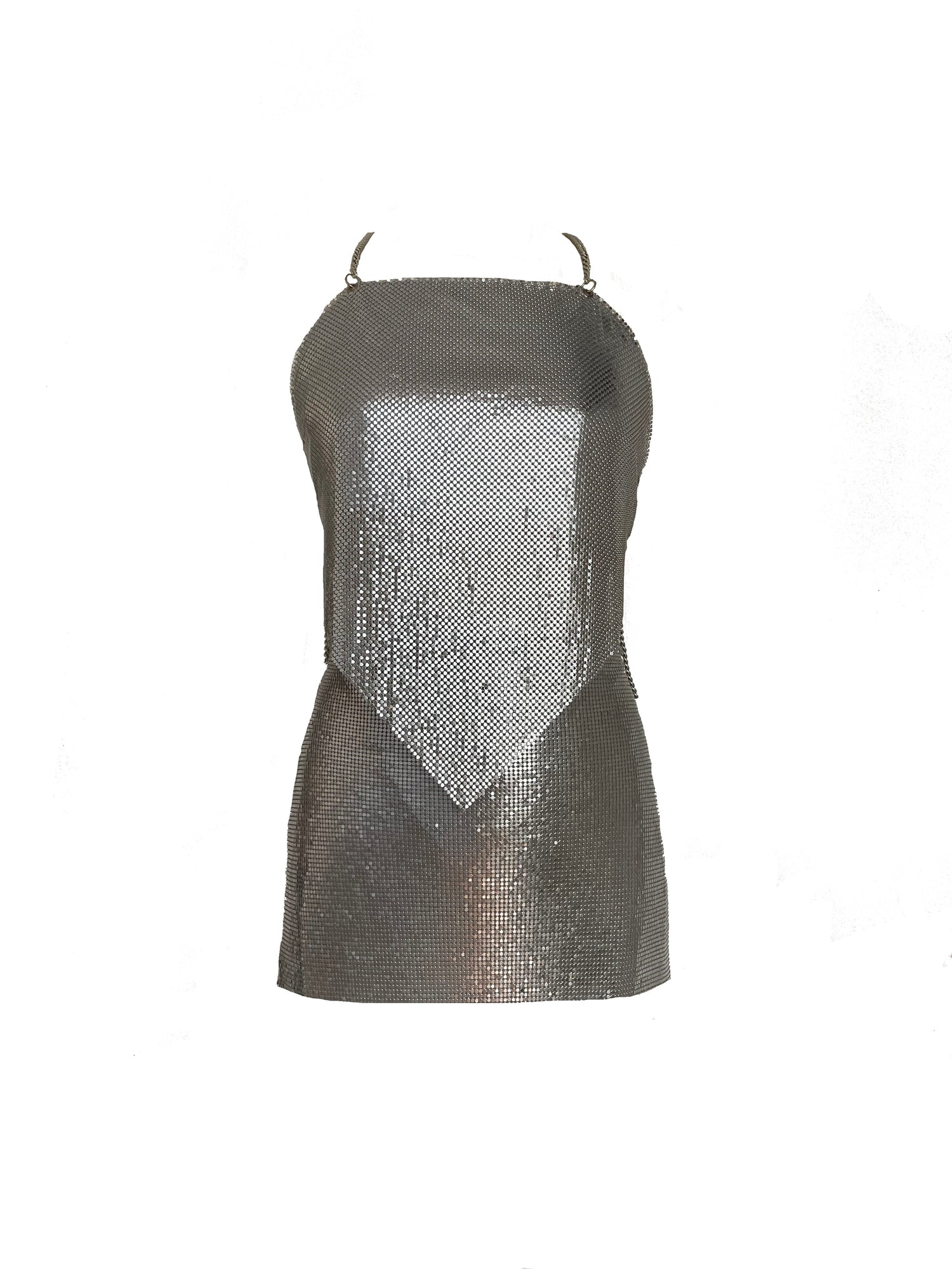 COMPOSITION: Material: Metal mesh. Inside: Lycra. Elastic in the back.